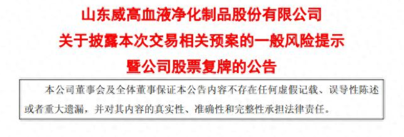 停牌近半个月的威高血净发布公告称,公司拟发行股份,购买威高股份、威海盛熙和威海瑞明持有的山东威高普瑞医药包装有限公司的100%股权,从而构成了重大资产重组及关联交易,但不构成重组上市,公司股票将于明天复牌。 消息一出,公司2.48万名股东立马就沸腾了。 不少投资者难掩兴奋地留言说,公司刚上市才半年时间,就开始筹划重大资产重组了,看来是个搞资本运作的高手啊,后面不排除还会有这样的动作;还有投资者说,并购重组是公司做大做强的重要方式,公司明后年的业绩增长,基本上稳了啊;更是有投资者开始畅想,公司股票