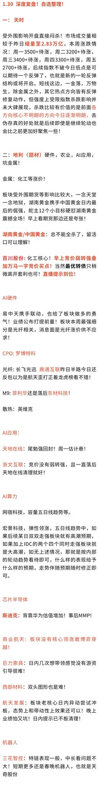 一: 天时 日十字K线的高低点仅小幅高于昨日,硬控无敌!对于短线交易而言,当前指数走势的参考优先级不高!比如今上午黄线主动这段期间题材的回流才能感受到一些超短的氛围,明日指数预期依旧以震荡运行为主!赚米效应弱分歧! 二:地利(题材)金属,白酒,AI应用,坑航天! 金属: 日内强分歧,但是结构屁事没有!个人感觉石油会想到好点!老米一直想伊朗! 白银有色 8B 已经触发了监管,晚上看监管态度!! 山东墨龙:港继续套利!科力股份 30cm最靓的仔! 白酒:不做评价!喝不了! 商业航天:当初4w亿流入最