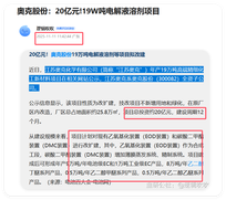奥克股份:20亿元!19W吨电解液溶剂项目