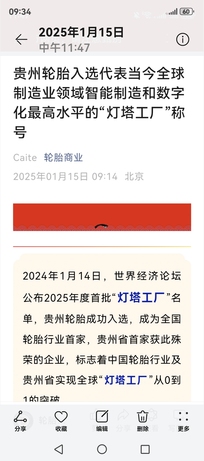 贵州轮胎000589全球轮胎行业第一家入选全球“灯塔工厂”(也是唯一一家),数字化智能制造,轮毂机器人一体化。 $贵州轮胎(000589)$ 下周二有涨停板(下周一晚出业绩,有0.32元是超预期)!贵州轮胎000589全球轮胎行业第一家入选全球“灯塔工厂”(也是唯一一家),数字化智能制造,轮毂机器人一体化。三季报业绩0.32元, 全年业绩0.47元,明年业绩0.6元!中线必到7元以上。 三季报渐行渐近!机器人∽低价低估值机器人轮毂钢圈一体化-贵州轮胎000589净资产5.6元(股价仅4.75元)
