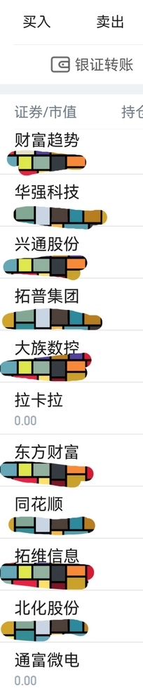 ),拉卡拉。 盘中买入华强科技,北化股份 ,通富微电 , 拉卡拉 , 拓维信息总共 6成仓。