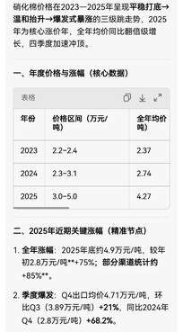 AI硬件涨价,金属涨价,稀土涨价,染料,石油涨价………… 今年好多都在涨价 硝化棉三年三级跳,爆发式上涨 硝化棉也迎来涨价潮: 硝化棉作为军民两用核心基础材料,近三年走出底部企稳→温和上行→加速暴涨的强势行情,2025年迎来历史性拐点。 2023年:价格平稳运行,区间2.2-2.4万元/吨,行业供需平衡,为上涨蓄力。 2024年:成本推动+供给收缩,价格抬升至2.3-3.1万元/吨,全年均价同比+15.6%。 2025年:供需缺口彻底引爆行情,价格从年初2.8万元/吨飙升至年末4.9万元/吨,全