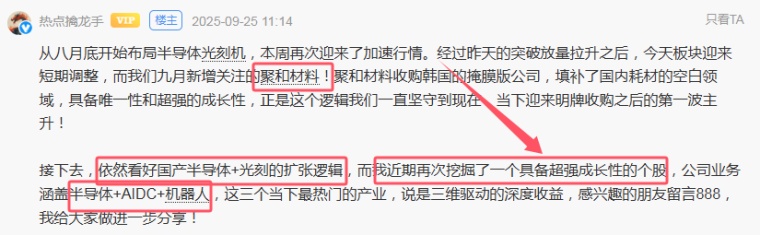 上周四和大家免费分享了聚和材料的逻辑,本周继续迎来新高(里面已经在9.16开始低吸布局)!当时和大伙儿说的另一只超成长性个股,今天也走出了新高! 圈内的已经提前享受到了福利! 那么,今天就给大家再次免费梳理一下,这家业务涵盖半导体+AIDC+机器人,具备超强成长性公司! 一、同类实操案例回顾:湘油泵--美湖股份 与我一起共舞的小伙伴们都知道,我在去年年底开始挖掘的湘油泵(现改名为:美湖股份),当时市值只有50~60亿左右,如今已经150亿市值的中军领袖人物! 这里面的主要逻辑是公司新增了当下最热
