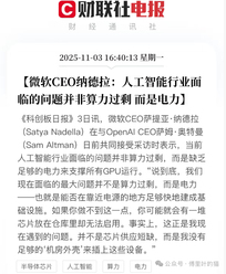 微软CEO纳德拉:人工智能行业面临的问题并非算力过剩 而是电力就是能否在靠近电源的地方足够快地建成基础设施。美国电力紧缺持续发酵。 微软CEO萨提亚·纳德拉(Satya Nadella)在与OpenAICEO萨姆·奥特曼(Sam Altman)日前共同接受采访时表示,当前人工智能行业面临的问题并非算力过剩,而是缺乏足够的电力来支撑所有GPU运行。“说到底,我们现在面临的最大问题并不是算力过剩,而是电力-也就是能否在靠近电源的地方足够快地建成基础设施。如果你做不到这一点,你可能就会有一堆芯片放在仓