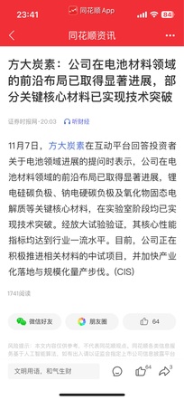 方大炭素宁德时代战略合作结硕果 相关核心材料有望突破中试量