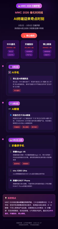 “千问AI穿戴”APP或已开发完成,从名称不难推测:该APP主要用于管理AI硬件,打造一体化的随身智能体验,明显是要配合整体的硬件布局而筹备。2月27日,阿里宣布千问正式进军AI硬件。首款千问AI眼镜将在巴塞罗那MWC发布,3月2日开启预约;年内还会陆续推出AI指环、AI耳机,全部面向全球市场发售。可以预见,“千问AI穿戴”APP距离正式发布不远了。但最终发布时间与产品名称、形态,请以阿里千问官方为准。(来自选股通APP)