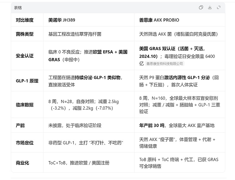 $倍加洁(SH603059)$ 投资逻辑 $美诺华(SH603538)$ $均瑶健康(SH605388)$ 倍加洁(善恩康)AKK PROBIO 的健康减肥逻辑,是GLP-1 减肥认知普及 + 美诺华临床引爆 + 天然内源 GLP-1 + 合规 / 产能 / 商业化三重壁垒共振,形成 “安全 + 有效 + 可落地” 的完整闭环,业绩确定性与弹性显著优于 JH389。 健康减肥 倍加洁的 AKK PROBIO逻辑: 1. GLP-1 减肥药 疗效 马斯克 科普 完成 深入人心 2. 美诺华 益生菌