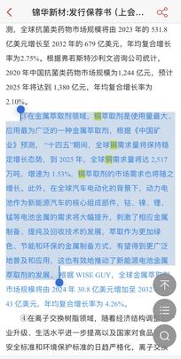 羟胺盐下游行业应用于铜萃取剂行业 在金属萃取剂领域,铜萃取剂是使用量最大、应用最为广泛的一种金属萃取剂,根据《中国矿业》预测, “十四五”期间,全球铜需求量将保持稳定增长态势,到 2025 年,全球铜需求量将达 2,517 万吨,增速为 1.53%,铜萃取剂的市场需求也将随之增长。此外,在全球汽车电动化的背景下,动力电池作为新能源汽车的核心组成部件,钴、镍、锂、锰等电池金属的需求将大幅提升,刺激了相应金属制备、提纯及回收技术的发展,萃取作为更加绿色、节能和环保的金属制备方式,有望得到更广泛地普及