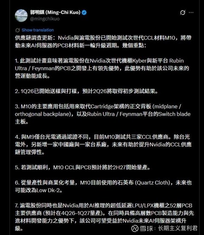 1. 热泵:中东地缘冲突升级——卡塔尔等国LNG出口受阻——依赖中东LNG的欧洲天然气价格飙升——传统的燃气锅炉经济性变差、热泵优势放大,其后还伴随着欧洲国家的热泵补贴,进一步刺激热泵安装需求。 日出东方、万和电气、儒竞科技、大元泵业、盾安环境、英华特、彩虹集团 2. 沪电股份与NV计划就Kyber架构下的Rubin ultra/Feynman进行M10材料验证,公司是英伟达核心供应商之一,产能落地后业绩有望进一步高增。 英伟达M10材料最大增量--PTFE 英伟达M9材料以碳氢树脂为主,M10
