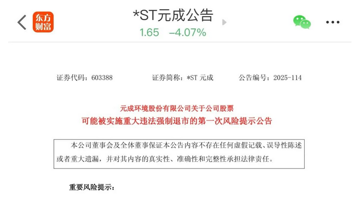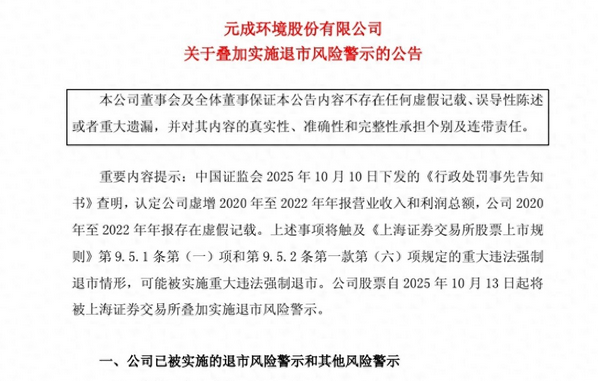 一则公告让场内1.02万股民瞬间清醒。 st元成被查出连续三年财务造假,虚增营业收入2.09亿元,加上之前公司通过虚增成本劳务和机械成本等项目的方式,利润总额虚增超5000万,持续造假行为加上2024年营收低于3亿元且净利润为负值,也是触发了退市的情形,可能被强制退市,周一开始,将被叠加实施退市风险警示,也就是披星戴帽了。 之前会计师事务所早已对财务报表出具无法表示意见的审计报告,也是埋下了伏笔,明显是个危险信号,然而资金还是不断涌进。 二级市场上,公司在2017年3月上市,发行价为12.10元