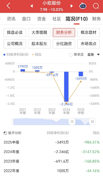 持仓小崧股份的1.62万股民这2天有点懵圈,节后的股价毫无来由的连遭2个跌停板,到最终还搞不清楚他究竟为啥跌得那么狠。 小崧股份,公司主要从事可充电备用照明灯具及可充电交直流两用风扇的研发、生产和销售业务,其收入主要来源于可充电交直流两用风扇,其占公司整体营收的40.62%,贡献了公司70.15%的利润,但相对单一的收入来源注定了公司抗风险能力偏弱。 观其业绩,虽然公司最近几年整体营收降幅不大,但业绩却是一年不如一年,2023年至今连续2年半期间的净利润累计亏损2.66亿元,业绩亏损状况呈持续扩