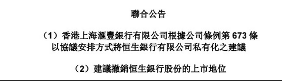 汇丰银行这次直接掏出1061亿港元现金,要把自家恒生银行从股市带回家!公司准备私有化退市,时间待定。 这笔千亿“聘礼”给出的每股155港元收购价,比市场价高了整整30%,估计小股东们乐的睡不着了。 消息一出来,恒生股价当天也是涨超29%,而汇丰自己却肉疼地跌了近6%,有网友也是调侃到:“这像极了婚礼上新郎掏空钱包强颜欢笑的样子”。 简单说下后续。 恒生基本业务照常营业,只是背后大老板从“控股股东”变成“全资老爸”。但汇丰接盘后得硬扛恒生近550亿港元的款,尤其是商业地产的账。为了凑够钱,汇丰未来