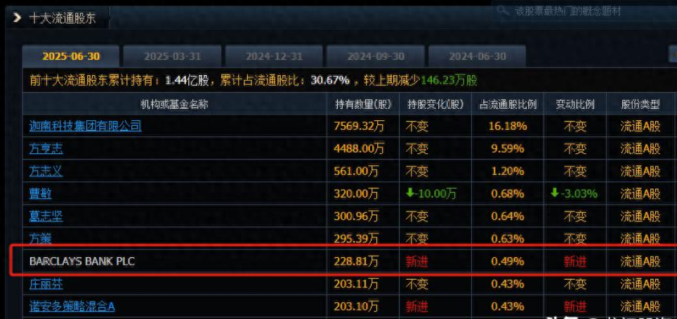光刻机概念今天集体大涨,板块有13家公司涨停,其中20厘米的涨停就有2家,但光刻机概念的相关股票股价都不便宜,整个板块106家公司,股价超过30元的就有52家,低价的很少。今天复盘发现有6家光刻机股价低于10元,且被外资和北向资金重仓持有。 一、迦南科技。现价5.27元,总市值26.23亿元。公司是制药装备行业领先的国产设备供应商,公司子公司上海六迦承接的国家某重点实验室光刻胶生产线顺利完成建设,正式启动整线联调。 从公司的前十大流通股东看,二季度巴莱克新进,持股228.81万股,位列公司第七大
