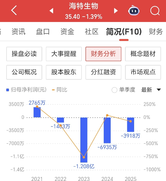 从8月中旬至今的整整一个多月,持仓海特生物的1.59万股民盼星星盼月亮,却根本等不来其股价的有反弹,途中抄底的也都抄在半山腰,不少人只能认栽割肉出局。 海特生物,公司主要从事神经分子新药商品化业务,但其主要收入源自对其他药企的技术支持服务,贡献了公司整体营收占比的49.39%。 虽然公司最近几年的营收整体相对稳定,但其业绩却从2022年至今的连续3年半期间累计亏损2.43亿元。 而其股价在前期大盘指数上涨和医药板块持续拉升的带动下有过一轮不俗的涨势,年内股价从4月9日的最低19.00元涨至8月2