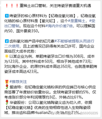 爱迪特一波十连阳,大涨70%。 逻辑在这: 上边提到的华瓷股份还没怎么涨,公社已经有老师科普逻辑了: 机构覆盖:氧化钇稀土海内外价差达80倍,华瓷股份、爱迪特深度受益 钇:稀土最被低估的细分,华瓷股份掌握钇规模化生产技术 爱迪特的独立逻辑让人眼前一亮,这个逻辑有点像九安医疗,国内材料成本低廉,然后做成成品去海外卖高价。 简单说说逻辑,就是做烤瓷牙的材料(牙科级氧化锆粉体)的结构稳定剂(氧化钇,防止假牙开裂)因为去年我国开始重稀土管制,国内外价格差几十倍了。因为最近中日关系恶化,全球龙头日企东曹库