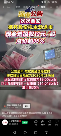 2026年首家拟主动退市的德邦股份,以19元/股现金选择权推出退市方案,较停牌前14.04元/股的市价溢价超35%,成为A股市场主动退市案例中的典型样本。从定价来看,高溢价现金选择权体现了大股东对中小股东的利益补偿,也反映出公司对退市流程顺利推进的诉求,这一定价方式相比过往部分退市案例的低溢价,更易获得股东认可。 此次主动退市,或与公司经营层面的战略调整相关,也可能是大股东出于私有化后整合资源、规避资本市场监管约束的考量。从市场影响而言,德邦股份的案例完善了A股“上市-退市”的市场化闭环,为后续