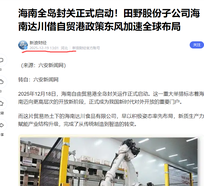 田野股份收购海南达川食品有限公司 进行资产重组 随时可以加自由贸易港概念 海南封关是继深圳之后,改革开放的又一个超级历史性事件 当年,《在希望的田野上》就是写给十一届三中全会后的安徽的,改革开放的创作背景 北交所海南比较稀缺 田野非常正宗 2025年12月18日,海南自由贸易港全岛封关运作正式启动。这一重大举措标志着海南迈向更高层次的开放新阶段,正式成为我国新时代对外开放的重要门户。 而这片贸易热土下的海南达川食品有限公司,早以积极姿态率先布局,新质生产力赋能产业结构升级,完成了从传统制造到智造