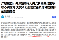 广联航空发布投资者关系活动记录表,公司拟通过收购天津跃峰部分股权,在商业航天领域从事运载火箭贮箱核心部件等产品的研发制造。天津跃峰现阶段收入贡献国家任务占比较高,已形成覆盖国家队火箭生产单位,以及天兵科技、蓝箭航天、星际荣耀等头部商业火箭公司的多元化客户体系。商业航天端已实现关键业务突破:作为天兵科技天龙三号核心供应商,为其承担整箭贮箱及部分结构件的制造任务,占结构件制造任务总体价值量60%-80%,单箭价值量超2000万元。 2026年1月7日,广联航空披露,其拟收购的天津跃峰作为天兵科技天龙