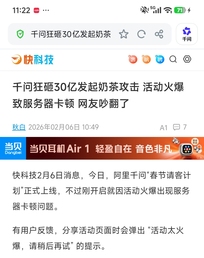 2月6日上午,千问开启新年送奶茶活动,访问人数短时间内激增。查询发现,多家奶茶门店因单量过多,已经选择临时闭店。 周末会继续发酵,成为春节前的最强题材,消费题材,推广活动一直持续到春节; 周末会继续发酵,成为春节前的最强题材,消费题材,推广活动一直持续到春节; 周末会继续发酵,成为春节前的最强题材,消费题材,推广活动一直持续到春节; 周末会继续发酵,成为春节前的最强题材,消费题材,推广活动一直持续到春节; 周末会继续发酵,成为春节前的最强题材,消费题材,推广活动一直持续到春节; 周末会继续发酵,