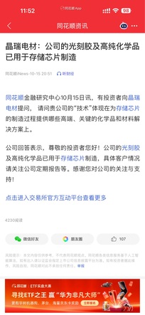 300655晶瑞电材;芯片+光刻胶+三季报业绩预增192倍;