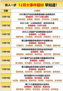 1、12月大事件 2、雷赛智能:T链电机有望释放产能 3、网络安全 4、四川旅游消费 (峨眉山A000888、天府文旅000558) 5、【蓝箭航天朱雀三号暂缓首飞】商业航天接着奏乐接着舞?(上海沪工、航天动力、乾照光电、斯瑞新材、隆盛科技) 1)火箭:超捷股份(壳体+贮箱)/上海沪工(壳体)/航天动力(发动机); 2)卫星载荷:上海瀚迅/臻镭科技/航天电子; 3)卫星平台:航天智装/上海港湾/陕西华达; 4)应用终端:通宇通讯/国博电子/海格通信。 6、太空算力大爆发,顺灏股份、四川金顶、普天