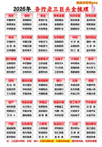 2026各行业三巨头全梳理