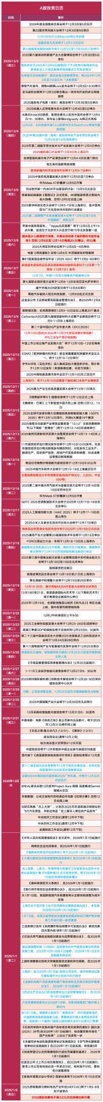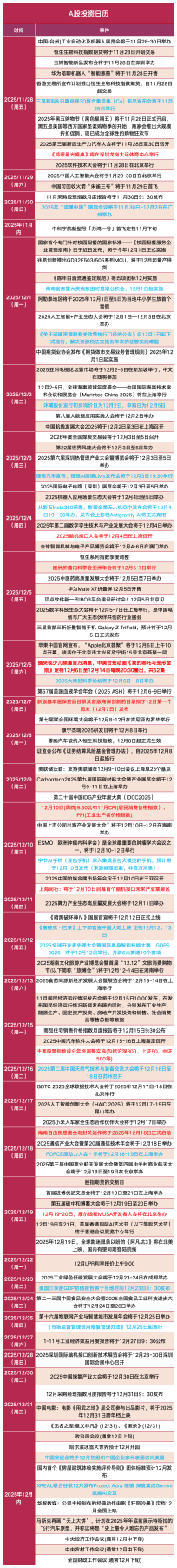 投资日历:明天市场盯着这件事 开始重视12月密集催化事件