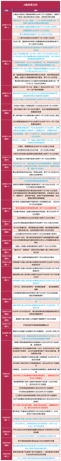 资日历:下周热门和明牌事件梳理 前瞻2026年权威大事