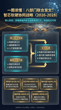 1.1 《行动计划(2026—2028年)》核心逻辑拆解:从单点突破到全产业链协同 2026年到2028年,这三年是国产算力的生死时速。 这个时间点的卡位极度精准。过去几年,咱们一直在“补短板”,解决的是从无到有的生存问题。现在政策风向变了,重心转向“筑长板”。面对全球技术围堵,光靠一两颗芯片单打独斗已经行不通。这次八部门联手,是要把高端训练芯片和端侧推理芯片放到同等重要的战略高度。训练芯片是云端的“大脑”,决定了大模型的上限;端侧推理则是边缘的“触角”,决定了AI能不能真正跑进手机、汽车和眼镜