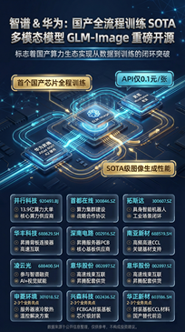 全流程国产化:从底层算力到顶层模型的深度解耦与重构 智谱这次和华为联手搞的GLM-Image,动静真不小。别只盯着“开源”这两个字看。真正的门道在“全流程国产”这五个字里。 以前搞大模型,底座基本是英伟达的天下。大家在上面跑跑算法,觉得挺美。后来环境变了,卡被卡脖子,大家才发现底座不稳。智谱这次选了华为昇腾Atlas 800T A2。这硬件算力管够,但硬件好买,生态难调。他们用了昇思MindSpore AI框架。这就是在国产地基上盖起了一座摩天大楼。 从数据预处理到模型训练,再到最后的推理。没用