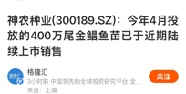 神农种业:投放的400万尾金鲳鱼苗已于近期陆续上市销售