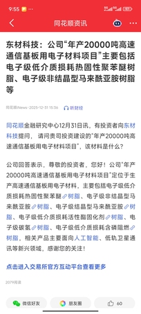 M9树脂 ,英伟达产业链国内唯一供应商。 同时应用于商业航天。 1.东材科技的M9树脂能在AI算力材料领域脱颖而出,其核心竞争力并非单一优势,而是一个由技术壁垒、客户认证、产能布局和战略前瞻共同构成的、难以复制的闭环体系。 下表概括了东材科技M9树脂核心竞争力的四个主要维度。 核心竞争力维度 具体表现 关键影响 🔬 技术壁垒 - 超低介电损耗:介电损耗(Df)低至0.0005-0.002,远超行业平均水平,显著提升信号传输效率。 - 卓越热稳定性:在150℃高温下性能零衰减,适配高功率AI芯片
