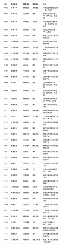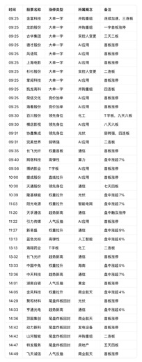 复盘异动明细 强势上涨板块(按资金热度排序) 1. AI应用 ◦ 核心标的:德才股份、风语筑、上海电影、掌阅科技、荣信文化、海看股份、横店影视、完美世界、博纳影业、捷成股份、引力传媒 ◦ 表现:多只个股大单一字涨停,覆盖首板、连板,板块内涨停潮明显,是当日最主线的热点。 2. 通信 ◦ 核心标的:长飞光纤、天通股份、天孚通信、新易盛、中天科技、亨通光电 ◦ 表现:权重股拉升+趋势新高股联动,板块内多股盘中涨超7%-9%,兼具人气与资金强度。 3. 光伏 ◦ 核心标的:协鑫集成、隆基绿能、聚和材料