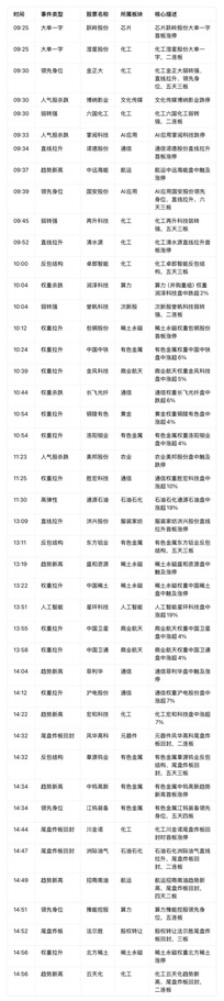 复盘异动明细 强力上涨板块(主线与强势支线) 弱势下跌板块(杀跌与情绪压制) 连板梯队 首板个股(按板块分类) 板块涨停数量与成交额 核心结论 • 主线方向:化工、有色金属(含稀土永磁)是全天最强主线,连板股多、趋势新高多、权重共振明显。 • 情绪压制:文化传媒、AI应用/算力、农业等板块出现明显杀跌,对市场情绪形成局部压制。 • 操作提示:主线板块内的连板龙头(如江钨装备、澄星股份)和趋势新高股(如中钨高新、云天化)是重点关注方向;杀跌板块需谨慎抄底,等待情绪修复信号。 今日市场呈现放量普涨+