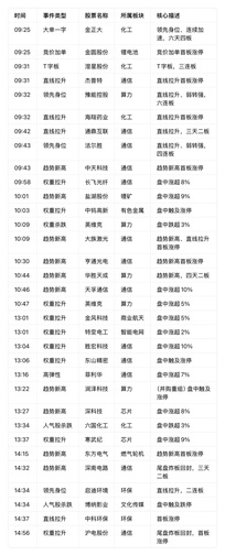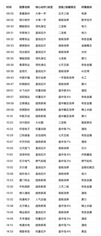 复盘异动明细 强力上涨板块(按强度排序) 1. 有色金属 ◦ 代表个股:翔鹭钨业、章源钨业、洛阳钼业、云南锗业、江钨装备、厦门钨业、中钨高新、锡业股份、铜陵有色等。 ◦ 表现:多股直线拉升、趋势新高、连板或七天五板,是全天最强主线。 2. 算力 ◦ 代表个股:豫能控股(七连板)、杭钢股份、华胜天成、利通电子等。 ◦ 表现:高连板+趋势新高+首板涨停,持续性强。 3. 电力 ◦ 代表个股:赣能股份(三连板)、华银电力(二连板)、闽东电力等。 ◦ 表现:连板梯队完整,板块内多股涨停。 4. 通信 ◦