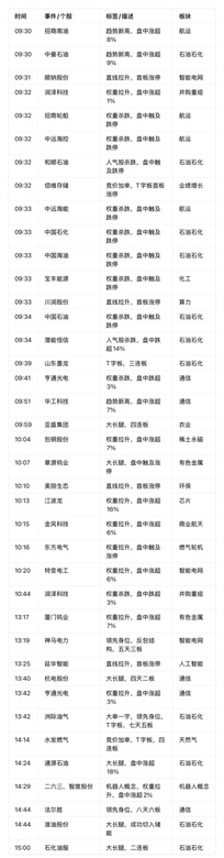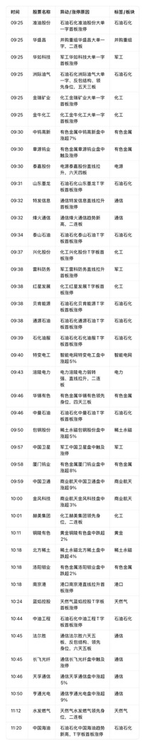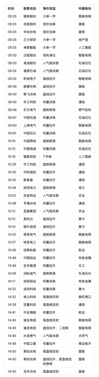 复盘异动明细 强力上涨板块 1. 石油石化(含天然气) 作为当日最强核心主线,板块呈现“题材高标领涨、趋势股补涨”的双轮驱动格局。高标方向,洲际油气走出七天五板的强势走势,以大单一字、T字板形态锁定领涨地位;山东墨龙三连板、水发燃气四连板形成梯队支撑。趋势补涨端,中曼石油盘中涨超9%创趋势新高,通源石油以大长腿形态盘中涨超18%,招商南油也同步实现趋势新高,多维度激活板块情绪,成为短线资金最集中的布局方向。 2. 智能电网 当日涨停家数最多的板块,形成“权重拉升+题材连板”的共振态势。题材端,顺