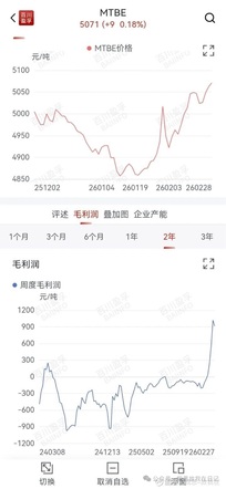 明天,石化板块必定是热火朝天的一天。有一个成品油添加剂的石化产品,预期差非常大,那就是MTBE。 为什么说MTBE预期差非常大?因为,MTBE价格看起来没涨多少,但其吨毛利上涨非常明显、且行业企业产能普遍较大。MTBE吨毛利,较近两年,上升约1200元/吨。看起来小,但对于一个市值小(50亿元)产能超级大(90万吨/年)的企业来说,业绩影响就很大了。吨毛利上升1200元/吨,90万吨/年,一年毛利增加约10亿元,对于一个市值约50亿元的公司,意味着什么?