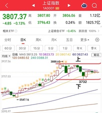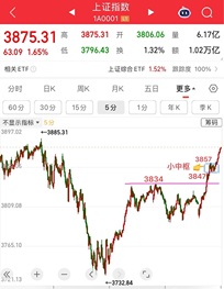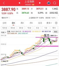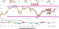 “甲骨文”市值暴增超2万亿,以一己之力撬动A股科技大涨!首富发“红包”了。 周四市场走的还是非常强的,预期变盘!证券,科技全部下场干活,带动市场人气,最终以一根中阳线收盘,并且收盘全天最高点3875,逼近前高3888,说明多头的力量还是很足的,量能相较于昨日放大4600亿,有量有价,那么今天这根k线还是比较扎实的。 技术面看,大盘早盘低开下探至3796,未破支撑3791,随后反身向上一阳上穿三线(5/10/20),且突破3834,加速向上,突破3834也给大家提示过,那就基本上已经确认要奔着挑战