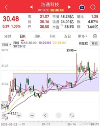 浩通科技昨天跟大家解释了,昨天站上了前期中枢,这是企稳的表现,行情不是一天铸成的,投资也不是一天就能翻倍的,需要一点一点滴去成长,让我们一起成长,让财富天下不断升值!相信浩通可以吃上大肉的点赞评论178,$浩通科技 sz301026$
