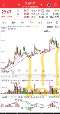 浩通科技,从目前的量能来做对比分析,目前量能萎缩到了前区突破的量能区间,受减持的影响近一个多星期了。回踩到了前中枢区间中上方,目前释放的空头差不多消化完毕了,多点时间花点耐心等一等,时候到了果汁自然熟,