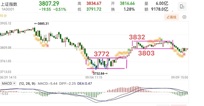 2025-9-8周一早评: 开盘为偏多方的震荡整理盘,指数问题不大,有收阳条件,但往上不适合追涨,创业板相对较弱,率先拉回中枢上轨,有震荡消化需求。 大盘观点:上证指数接下来大概率还是围绕中枢箱体继续震荡,后续如何打破震荡格局?比较重要的是当指数回到中枢上轨或回到下轨会怎么样,要怎么办的问题,这个到时候会给大家提示。 当前指数上有5,10日线压力,下有20日线支撑,方向不一致,三者均线正在逐步靠拢粘合,就看短线会往哪个方向去,若能进一步站稳5日线,则有条件再去挑战前高3888压力;若有效跌破20