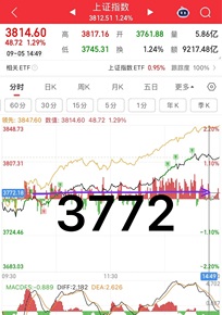 反弹来了!电池板块全面爆发,板块掀起涨停潮! 周五市场震荡走涨,指数强势反弹,尤其是创业板、深成指k线形态反包昨日阴线,走的还是非常强的,今天电池板块功不可没,撬动了整个大盘的情绪回暖,人气回流。这两天让大家,不要慌,会有修复反弹,这不是来了吗?所以你说,昨天割肉的离场的,是不是就是典型的追涨杀跌?真的就亏大发了,吃了一碗盖面不说,起身离开还得给大A付钱! 技术面看,早评也给大家提示了,图1.2,这个位置只要站稳3772,那么反弹就会随之而来,目标就是5日线附近,基本已经满足预期。 这个位置其实