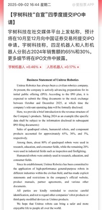 宇树科技宣布将在四季度提交IPO申请,估计是科创板。公司最新一轮的融资估值120亿,非常的便宜!!一旦上了科创板,感觉上市就能冲上千亿的市值啊。 A股市场很久没有明星公司上市了,宇树有“人形机器人第一股”的稀缺+高人气。感觉能带动市场一波狂欢,人形机器人、宇树概念,科技股都能嗨起来! 对了,还可能利好杭州房地产,“杭州五小龙”如果都能够上市,很多员工就要财富自由,可以买大平层了。 今年注定是科技大年,从易中天到寒武纪,这些龙头标杆,打开了整个科技产业想象的空间!下半年智元、沐曦、摩尔、宇树科技等
