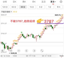 2025-8-25周一早评: 开盘15分钟观察,受周末利好刺激,大盘高开,个股延续分化走势,今日为偏多方的高开震荡整理为主,收阳;需注意5日线的乖离,不追涨,拉回把握个股机会。 大盘观点:9月降息预期,A股不断创新高,本周能否冲击4000点?技术面看,上证指数突破3800点,关键点3787,不破则沿着5日线的趋势继续向上。 策略上,不破趋势的条件下,盘中拉回找机会低吸,轻指数,重个股。 个人观点,仅供参考!#a股# #财经之星# #优质博文上热搜开放计划#