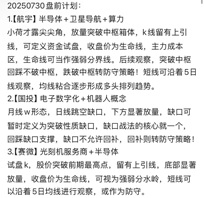 20250730盘前计划: 1.【航宇】半导体+卫星导航+算力 小荷才露尖尖角,放量突破中枢箱体,k线留有上引线,可定义资金试盘,收盘价为生命线,主力成本区,生命线可当作强弱分界线。后续观察,突破中枢回踩不破中枢,跌破中枢转防守策略!短线可沿着5日线观察,均线粘合逐步形成多头排列趋势。 2.【国投】电子数字化+机器人概念 月线w形态,日线跳空缺口,下方显著放量,缺口可暂时定义为突破性质缺口,缺口战法的核心就一个,回踩缺口支撑,缺口不允许回补,回补则转防守策略! 3.【赛微】光刻机服务商+半导体