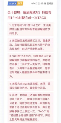解雇鲍威尔?特朗普用1个小时便完成一次TACO。 特朗普近期这是在反复试探解雇鲍威尔各方的反应,这次又TACO了。以他的尿性,下次说不定就真解雇了…#特朗普或很快解雇美联储主席#
