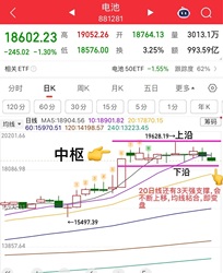 电池(固态、锂电)强势震荡,中枢不断向右延伸! 电池板块目前依旧属于强势震荡范畴,连续两周横盘,中枢升级,不断向右扩展延伸,本质上不变,等待选择方向!中枢不破问题就不大。 从均线上看,跌破5.10日线,但下方20日线方向还是向上的,还有3天强支撑,所以短线大概率围绕三者均线区间震荡,下周大概率会变盘,均线会逐步收敛粘合,所以电池板块,下周关注重点即中枢下沿不破或关注下方均线得失,如图所示,均已标注!