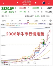 历史上的“牛市”,5月线就没跌破过…… 每一次大跌或者出现调整都会有人问是不是牛没了?难道牛市就不允许回调嘛!其实很多人只看日线,不看大级别周期,日线无疑是最为复杂多变的,但很多时候,当日线无法解决你当下疑惑的时候,不妨看看大一点的周期,比如周线、月线,或许能够找到答案,其实上周末也有讲过。 比如历史上的两波牛市2006年,2014年如图所示,5月线就没有跌破过,那么当前5月线的位置,下个月继续上移,是不是就可以推算到大盘调整的空间大概率会有多少了?所以看月线最直观。 牛市结构的调整方式,就一种