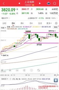 2025-9~22周一早评: 开盘观察,上证指数今日震荡整理为主,小阴小阳结构,其他指数像深成指、创业板偏阴概率。 大盘观点:上证指数上周一阴破三线,macd倒鸭嘴,调整周期3-5天,今日为第三天,调整为正常合理的范畴之内,不改变中线趋势向上。考虑到节前效应剩下一个完整周,指数大概率还是围绕大的中枢箱体继续震,需保持耐心。 5分钟的走势,从3899开始向下的走势,已形成一个小级别中枢,如果再向下破新低,可观察与前段的力量对比是否减弱,通过向下的力度、速度比较。往下不要怕,空间相对有限,回下来还是
