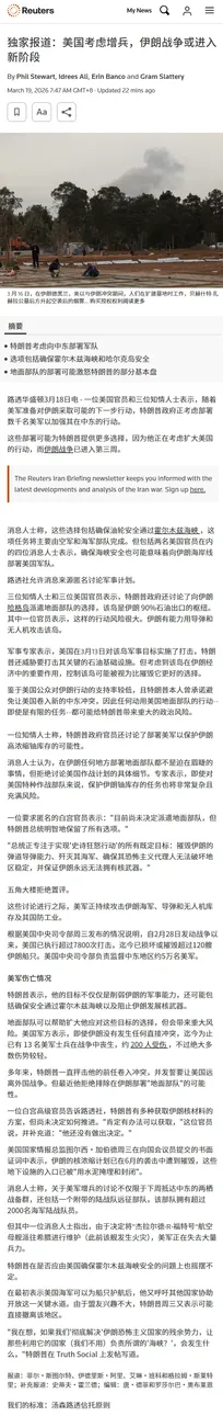 独家报道:美国考虑增兵,伊朗战争或进入新阶段